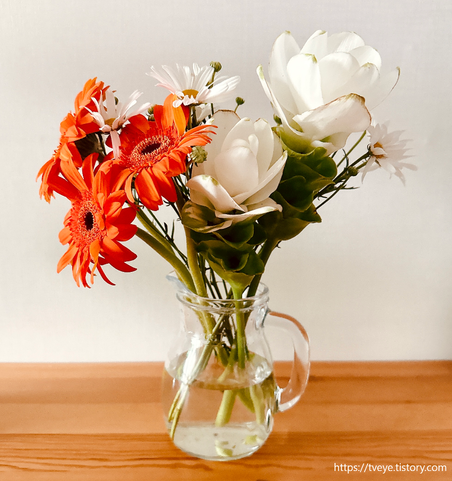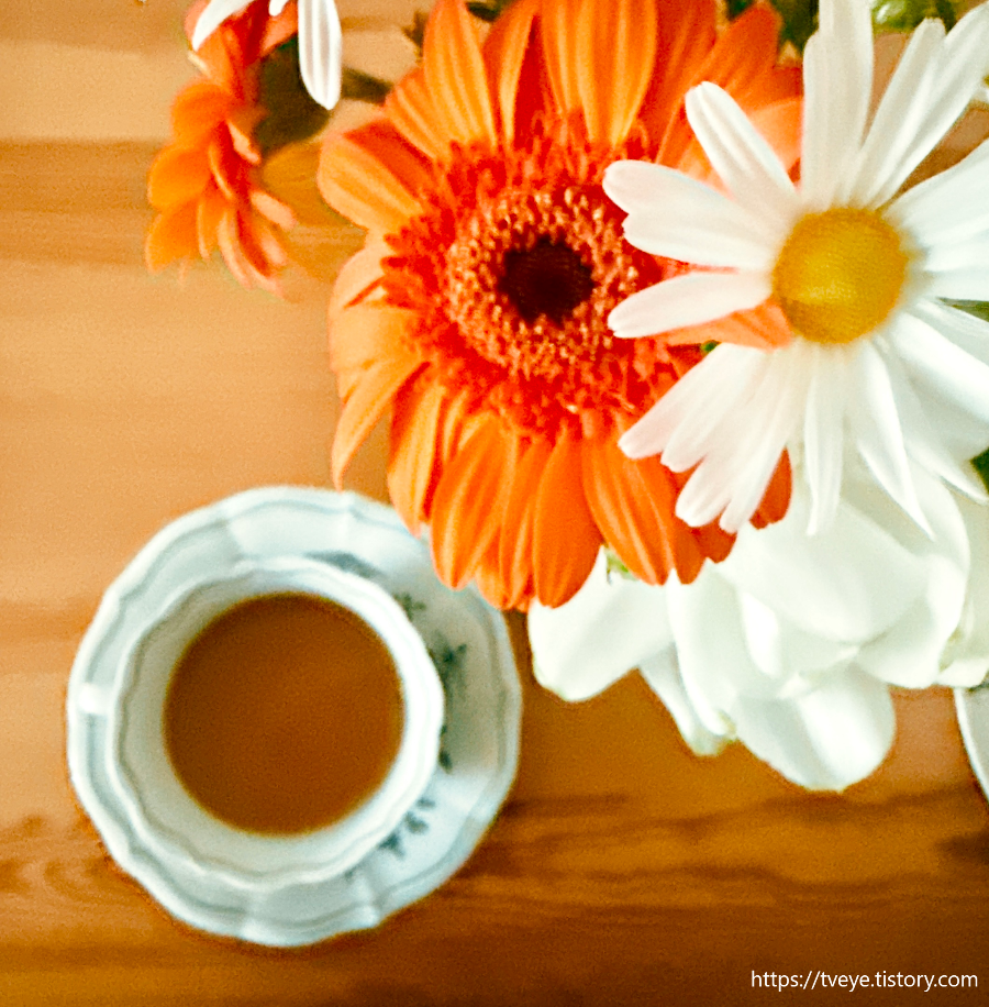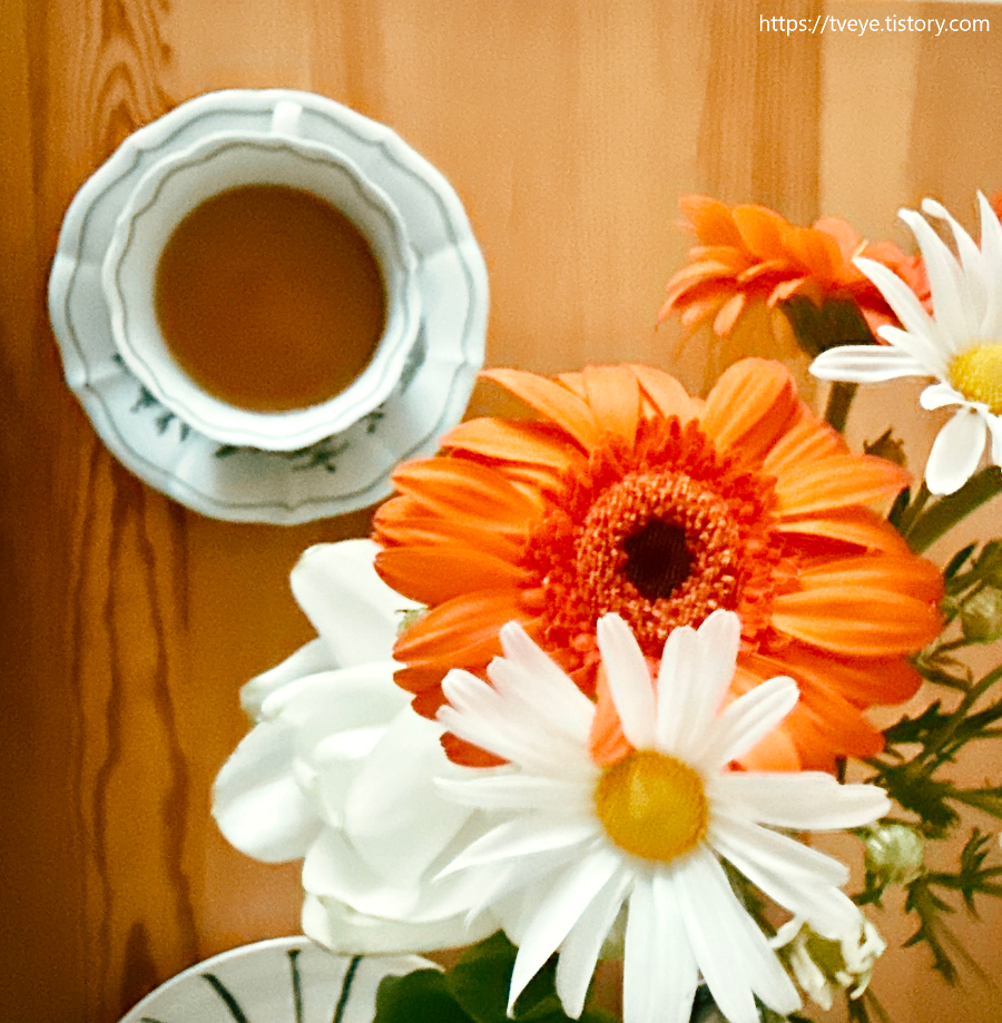 안 올 것만 같았던 토요일 오후. 그런데 오늘도 아침에 멀리 시내 출장을 다녀오느라 오후의 티타임은 상당히 늦게... 마가렛의 호프 다즐링을 진하게 우려 마셨다. 오늘 도착한 장미는 꽃송이가 크고 향기가 좋은 샛노란색 라티나 장미. 그리고 어제 행사를 마치고 버리는 게 아까워 챙겨온 거베라와 친척들. 어제 워낙 더워서 야외에 둔 꽃과 잎들이 금세 시들었기 때문에 그나마 살릴 수 있는 꽃들을 추려내 영양제를 타서 꽂아두었다. 그리고 지난주에 와서 남아 있는 하얀 쿠르쿠마도 같이.