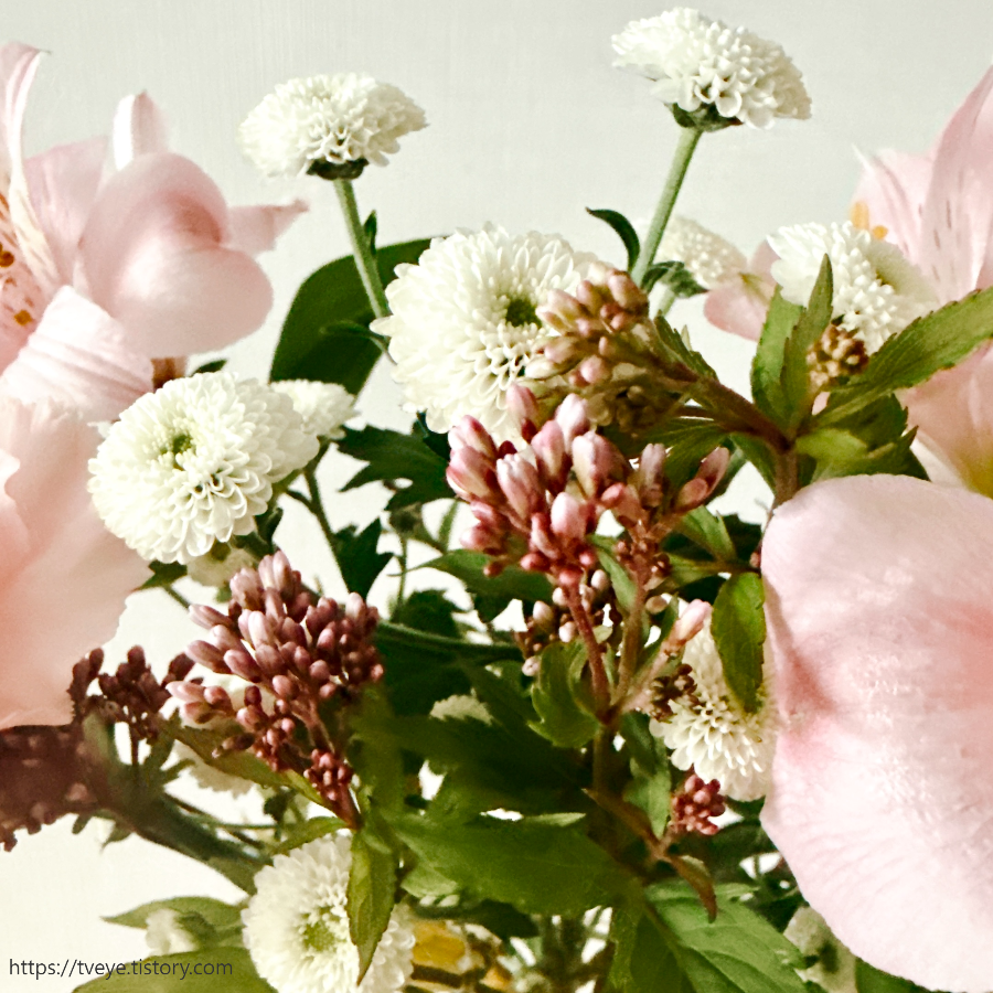 지난 주말에 온 꽃이 아직 싱싱해서 이번엔 꽃을 새로 주문하지 않았다. 역시 알스트로메리아와 카네이션은 가성비가 좋다. 생각보다 과한 분홍분홍이긴 했지만.