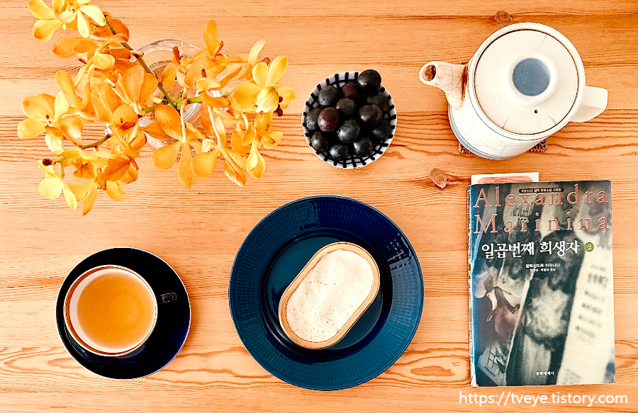 간만에 파란 하늘과 제대로 된 약간 싸늘한 날씨의 가을 토요일 오후. 아침 일찍 독감예방접종 받고 와서 그런가 계속 졸린다. 오후의 티타임. 여름에 도브라 차요브나에서 사온 네팔 일람.