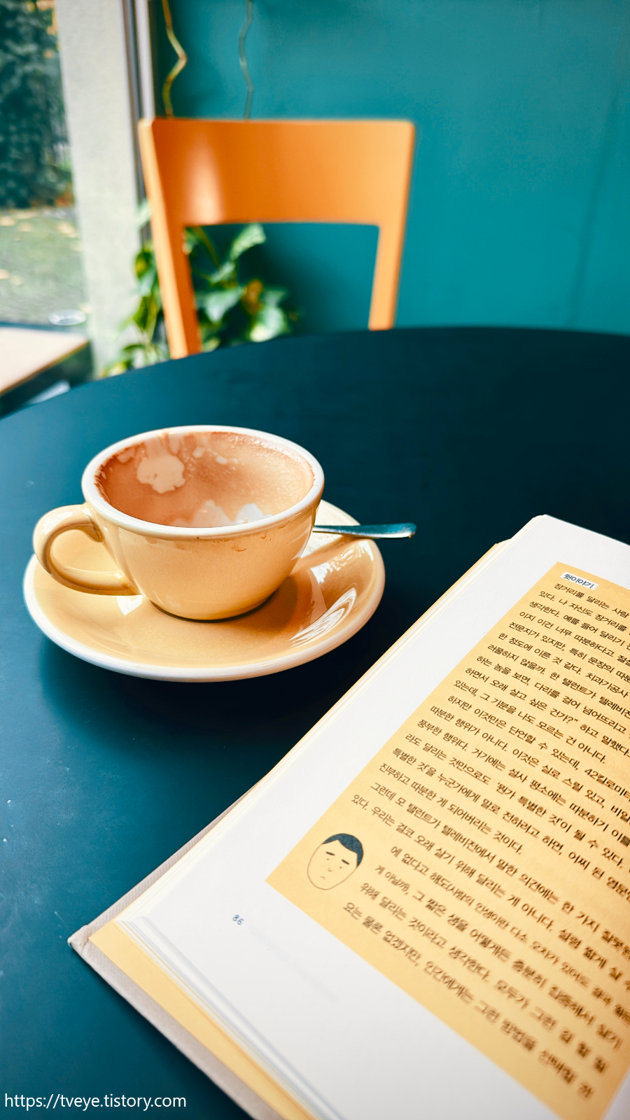 창가의 노란 단풍, 노란 의자, 노란 러브라믹스, 가져온 책의 노란 컬러 페이지가 터키블루와 어우러져 무척 예뻤다. 아아 우리 동네에 여기 분점도 있었으면... 에벨, 헤드 샷, 애시드가 있으면 좋겠다. 도브라 차요브나는 카페 자이칙으로 커버할 수 있겠는데 흐흑... 돌어가면 엄청 그립겠지.