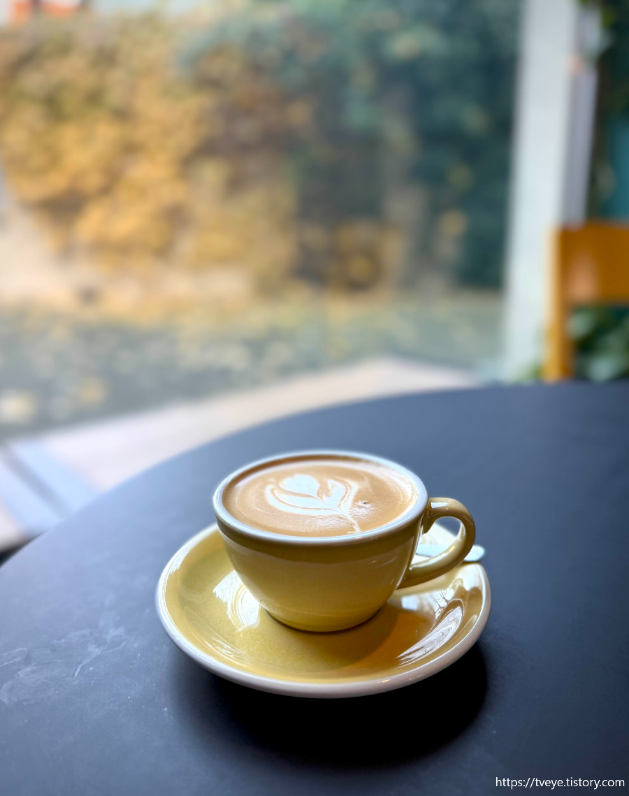 여기는 디카페인이 되므로 진짜 오랜만에-엘스카를 좀 생각하며- 플랫화이트 디카페인을 주문해보았다. 확실히 컬러도 더 진하고.. 쓰다 ㅎㅎㅎ 설탕 투하... 나는 카푸치노까지가 한계인 걸로...
