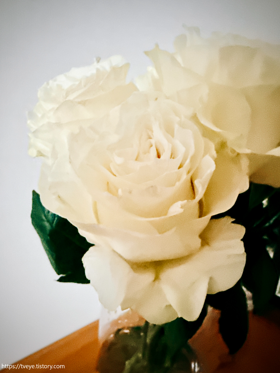 사진의 장미는 어제 일린 픽업하러 노래방 앞에 나갔을 때 서프라이즈로 준 것. 하얀 장미인데 꽃송이도 크고 향기도 좋고 예쁘다. 역시 꽃 받는 건 언제나 좋아... 꽃을 들고 다시 노래방으로 들어오자 에릭은 라스에게 자기도 꽃 좋아한다고 말했다. 라스가 꽃을 사줬으려나... 근데 에릭이 꽃을 좋아했나? 난 기억에 없는데 ㅎㅎ