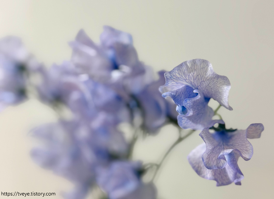 오늘의 꽃은 스위트피. 스위트피는 너무 예쁘고 하늘하늘하고 향기도 좋은데 금방 시들어버리는 게 단점이다. 이거랑 스프레이 델피늄이 그렇다. 그래서 주문하려면 큰맘을 먹어야 함.