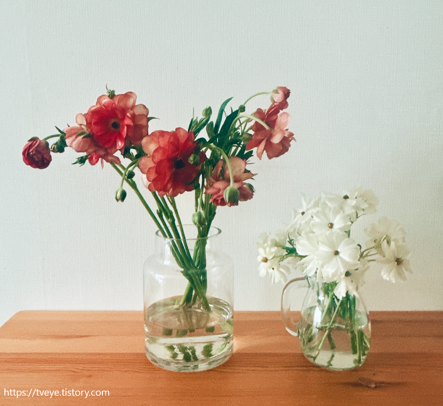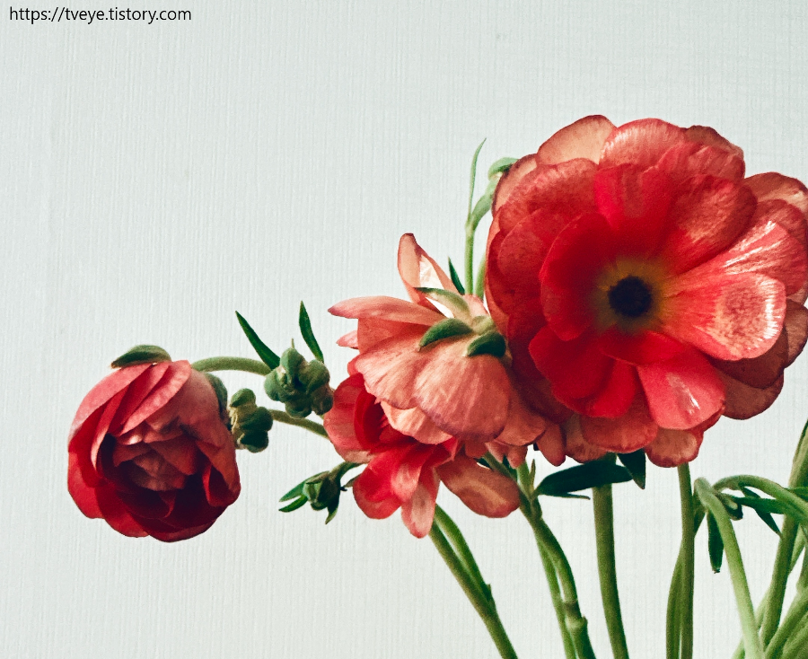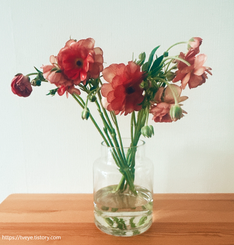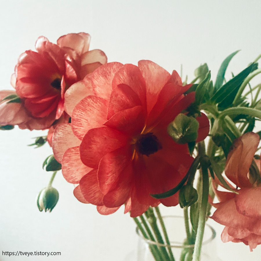 오늘 새로 받은 버터플라이 라넌큘러스, 코랄 컬러라고 해서 주문했는데 기존의 레드 컬러인 하데스와 색이 비슷하다. 그 컬러가 좀처럼 들어오지 않고 있던 터라 이것도 반가웠다.