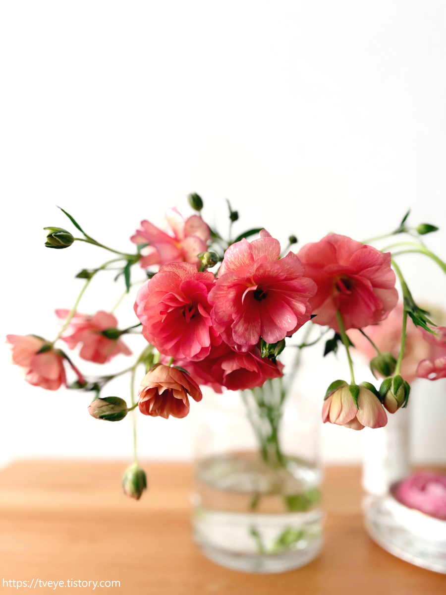 오늘의 꽃인 코랄 버터플라이 라넌큘러스 사진 몇 장 접어두고 마무리.