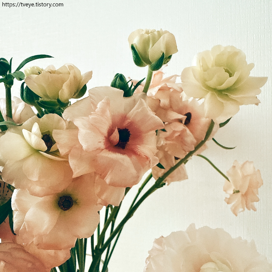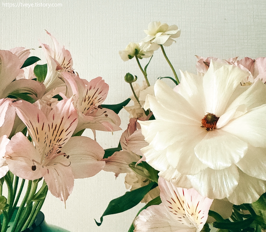 지난주의 알스트로메리아와 버터플라이 라넌큘러스가 아직 시들지 않아서 이번주는 이 꽃들과 좀더 같이...
